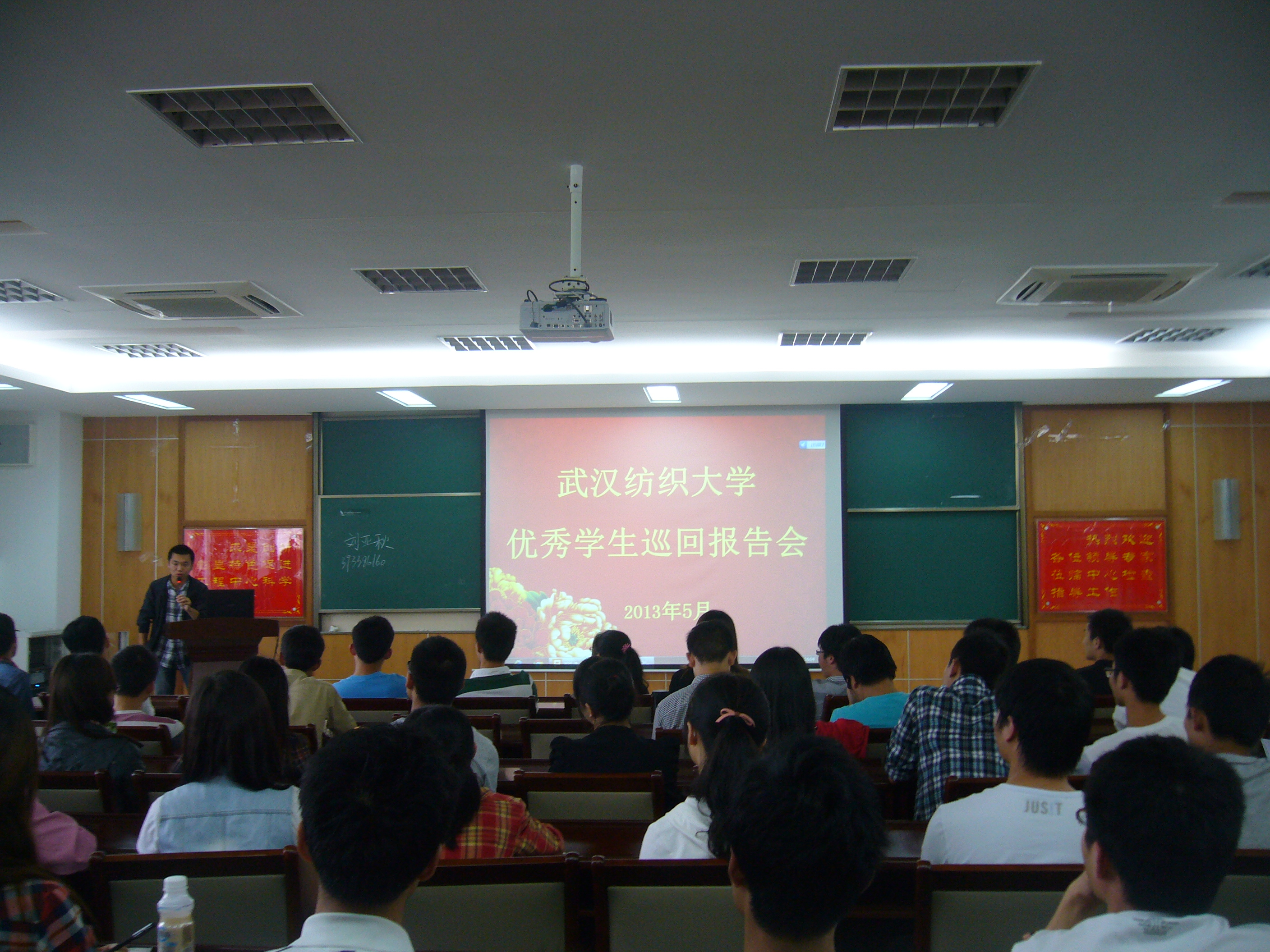 报告团是由六位考取了重点高校的研究生们和找到理想工作的毕业生们组成。以418分考入重庆大学的陈佳同学从时间安排、效率提升、科目复习主次分清等多角度向同学们讲解了他所拟定的学习方案。随后,跨专业考取东南大学研究生的王亚晶同学从跨专业考试,复习、寻找导师等考研技巧上相同学们进行了详细的说明。获得武汉市环境保护大使的蔡石同学,从在校期间学业规划、员工干部成长经历等方面和大家分享了自己的感悟。考入华南理工大学的刘雷同学针对政治和英语讲述了自己的经验,他强调学习英语要持之以恒;而考入西南大学的刘亚秋同学在英语学习方法上建议同学们多背单词,多做阅读,对高数则建议多做真题,同时向同学们推荐了几本专业学习材料,告诫大家只有多看多学才能有所进步。最后,给排水张颖新同学强调了实践和动手操作能力,并鼓励大家“只要努力,一切皆有可能”。