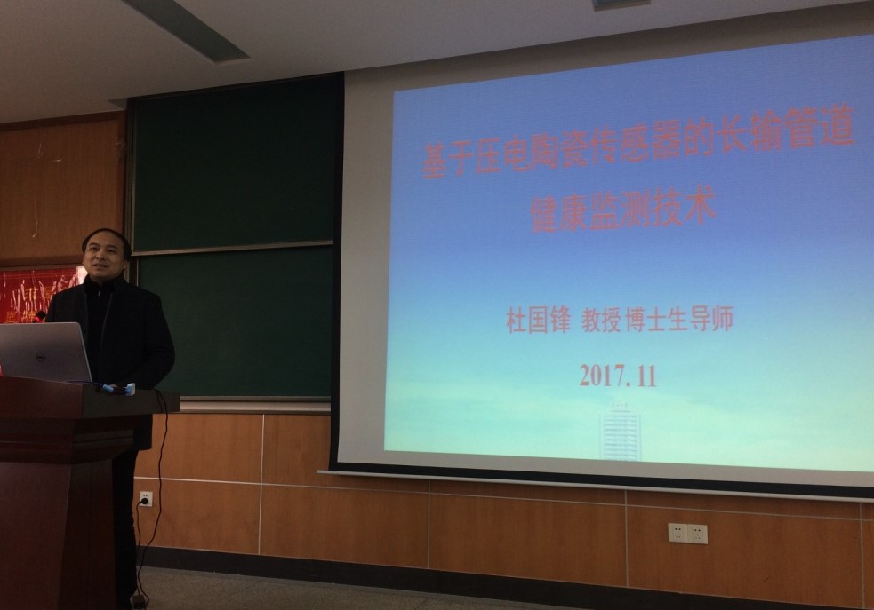 杜国锋教授结合自己多年的研究成果,详细介绍了开发研究的陶瓷压电传感器在石油、天然气等管道输送中的检测应用技术,介绍了当前该项该项技术的最新研究成果、存在的主要问题及解决办法。另外,杜国锋教授也结合自身的研究,为研究生讲述了开展科研研究的一些基本方法,为同学们今后如何开展科研活动和规划研究方案提供了借鉴和指导。