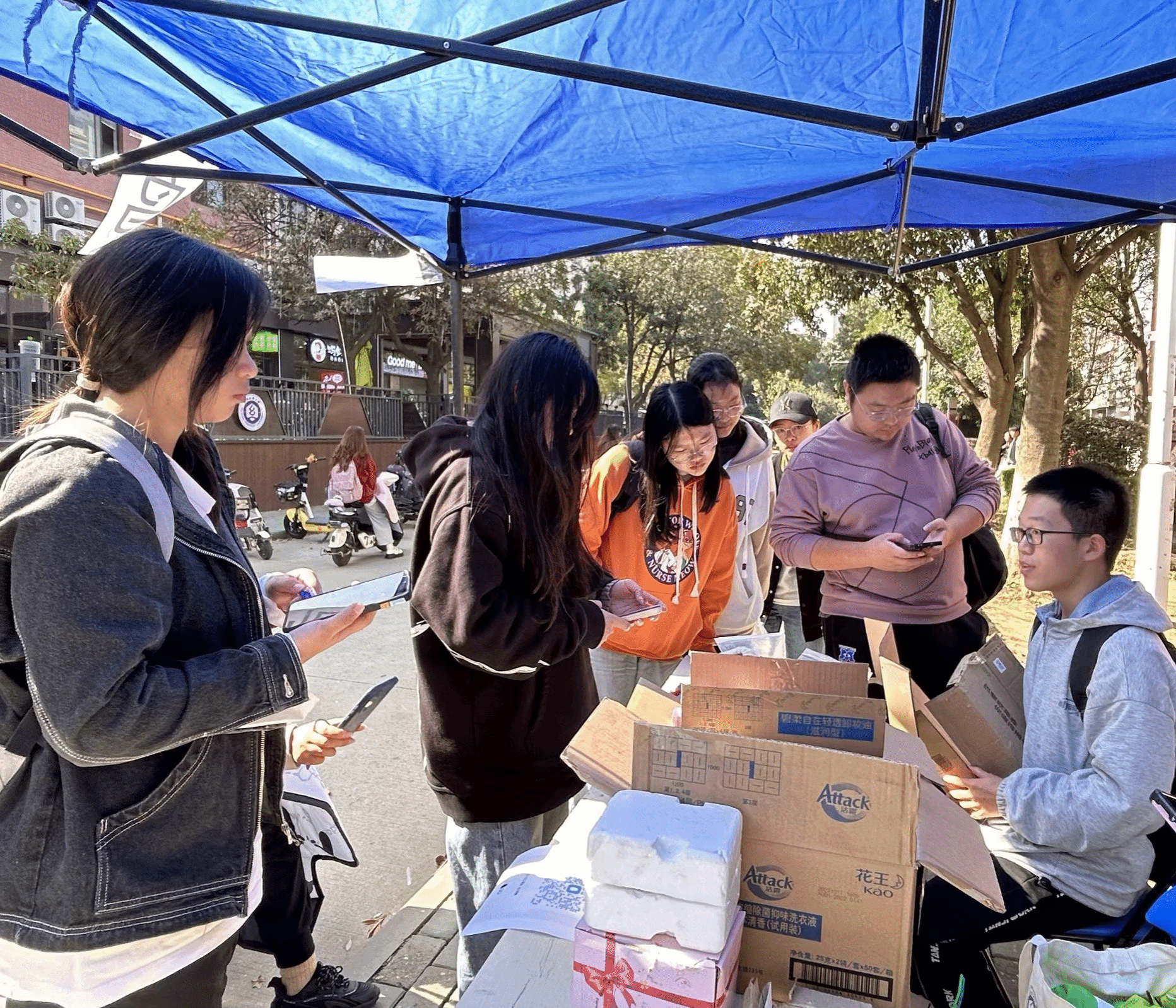 据统计,23日当天回收了近300个快递纸箱。“双十一后同学们同学们的快递包裹很多,纸箱扔掉又可惜,正好可以回收后留给菜鸟驿站,给寄快递的人循环使用,我们也想通过这个活动,让大家知道环保其实就在我们身边。”绿协志愿者袁怡晗说道。