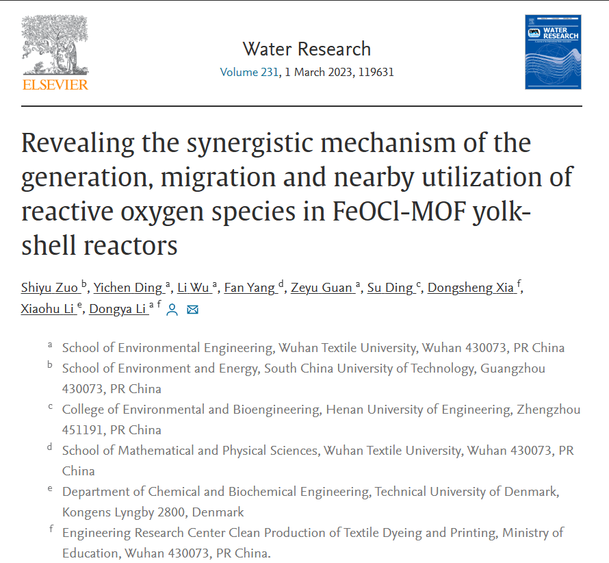 近期,公司教师李东亚特别教授和华南理工大学合作,在废水中有毒有机物污染控制领域取得新进展,揭示了蛋黄壳微反应器中活性氧物种生成、释放和就近利用的协同机制。相关成果以“Revealing the Synergistic Mechanism of the Generation, Migration and Nearby Utilization of Reactive Oxygen Species in FeOCl-MOF Yolk-shell Reactors”为题,发表在环境领域权威期刊《Water Research》上(https://doi.org/10.1016/j.watres.2023.119631)。威廉希尔体育为唯一通讯单位,李东亚特别教授是唯一通讯作者。